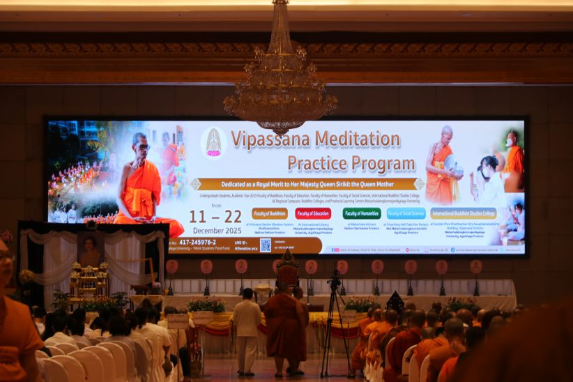 วันพฤหัสบดีที่ ๑๑ เดือนธันวาคม พ.ศ. ๒๕๖๘ เวลา ๑๖.๐๐ น. ผู้บริหาร คณาจารย์ เจ้าหน้าที่ พระวิปัสสนาจารย์ และนิสิตคณะสังคมศาสตร์ นำโดย พระเทพวัชรสารบัณฑิต, รศ.ดร. รองอธิการบดีฝ่ายวางแผนและพัฒนา พระครูสังฆวิริยกิจ, รศ.ดร. รองคณบดีคณะสังคมศาสตร์ ฝ่ายวิชาการ รศ.ดร.สุรพล สุยะพรหม รองอธิการบดีฝ่ายกิจการทั่วไป และ รศ.ดร.ภัทรพล ใจเย็น รองคณบดีคณะสังคมศาสตร์ ฝ่ายบริหาร เข้าร่วมพิธีเปิดโครงการปฏิบัติวิปัสสนากัมมัฏฐาน ถวายเป็นพระราชกุศลแด่ สมเด็จพระนางเจ้าสิริกิติ์ พระบรมราชินีนาถ พระบรมราชชนนีพันปีหลวง นิสิตระดับปริญญาตรี (ส่วนกลาง) ประจำปีการศึกษา ๒๕๖๘ มหาวิทยาลัยมหาจุฬาลงกรณราชวิทยาลัย โดยมี พระพรหมวัชรธีราจารย์, ศ.ดร. อธิการบดี เป็นประธานกล่าวเปิดโครงการและบรรยายพิเศษ เรื่อง “การปฏิบัติวิปัสสนากัมมัฏฐานตามนโยบายของมหาวิทยาลัย” ณ อาคาร มวก ๔๘ พรรษา มหาวิทยาลัยมหาจุฬาลงกรณราชวิทยาลัย ตำบลลำไทร อำเภอวังน้อย จังหวัดพระนครศรีอยุธยา